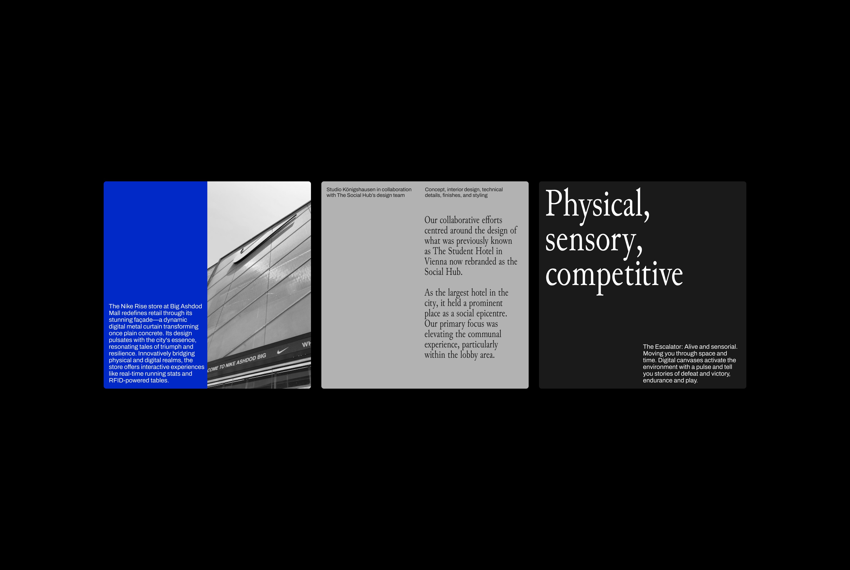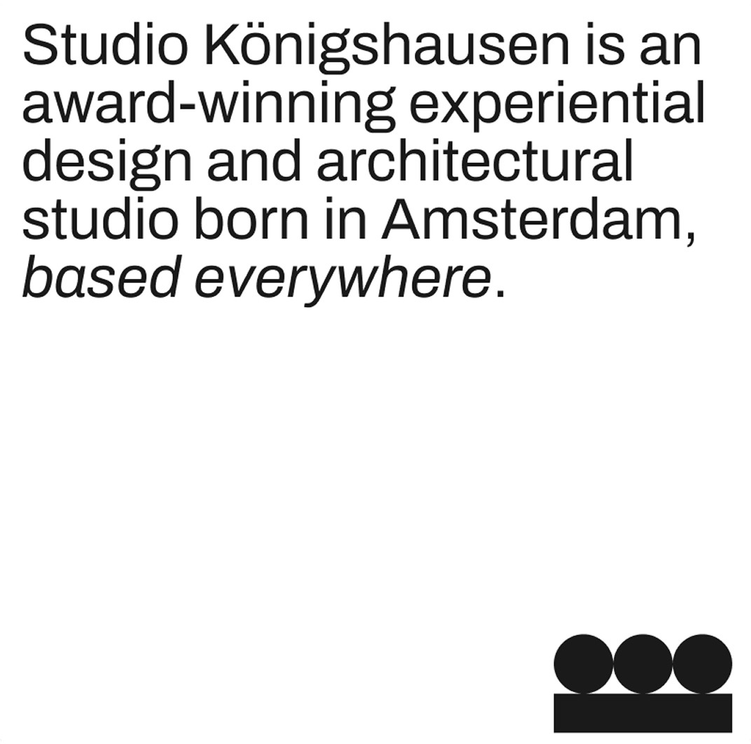 Studio Königshausen is an award-winning experiential design and architecture studio based in Amsterdam, working globally with brands like Nike, Montblanc, and Marriott. The collaboration focused on refining the visual identity to match the ambition and scale of their projects.